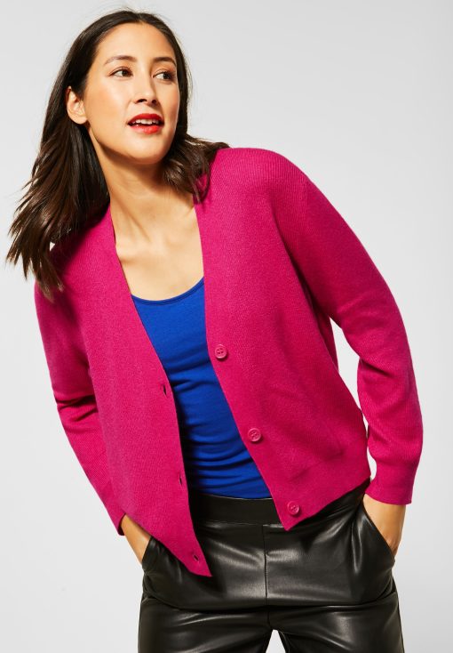 Street One Cardigan mit Knöpfen in Raspberry Pink Melange